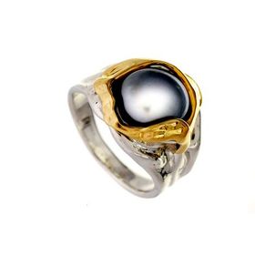 925 Silver and 14k Yellow Gold Ring with Pearl